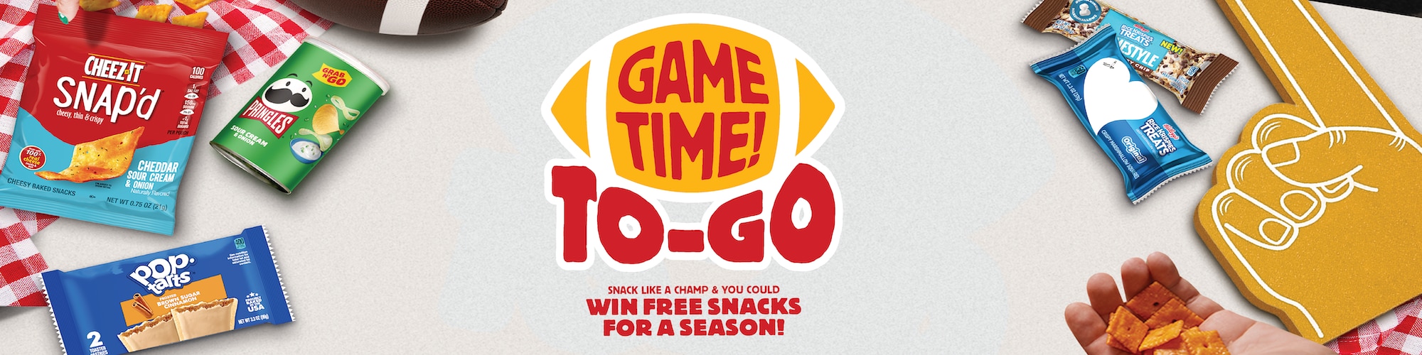 Snack on your favorite Pringles®, Pop-Tarts®, Cheez-It®, RXBAR®, Special K®, Rice Krispies Treats® and Nutri-Grain® for a chance to win a year’s supply of snacks or a $25 gift card.
